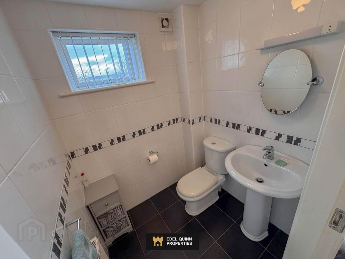 WC, washhand basin, 1no. window, 1no. radiator, tiled