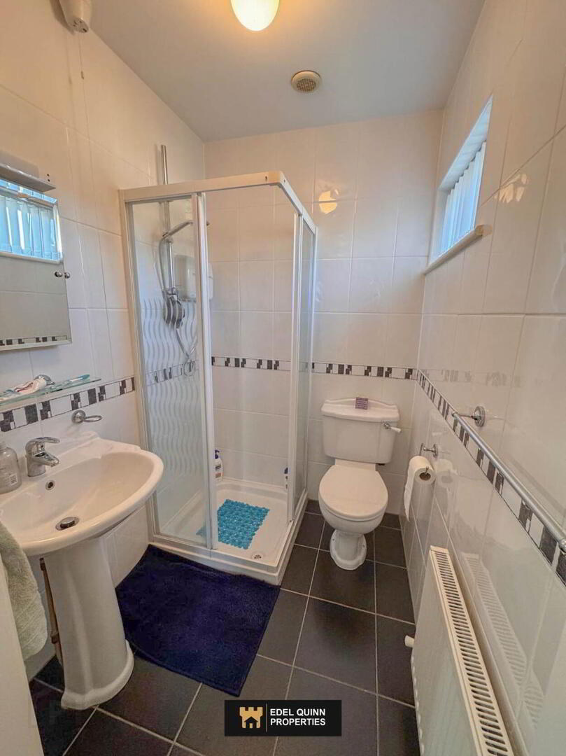 Tiled, wc, wash hand basin, 1no. radiator, 1no. window, electric shower