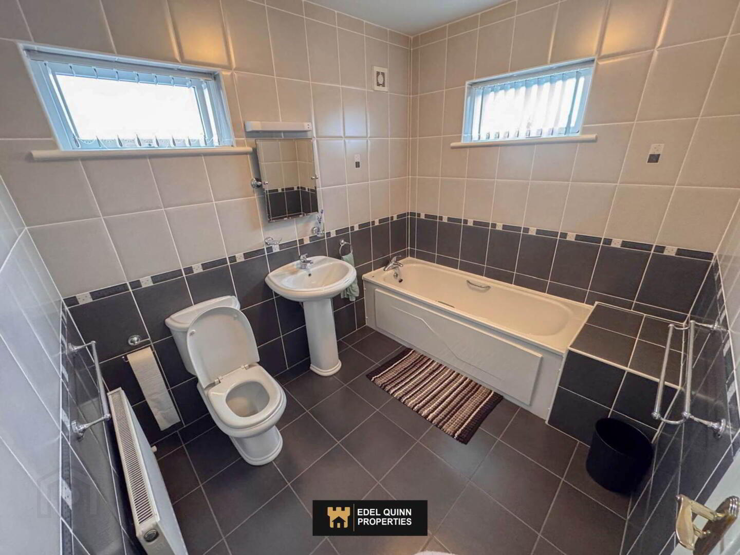 Tiled, 2no. windows, wc, whb, bath