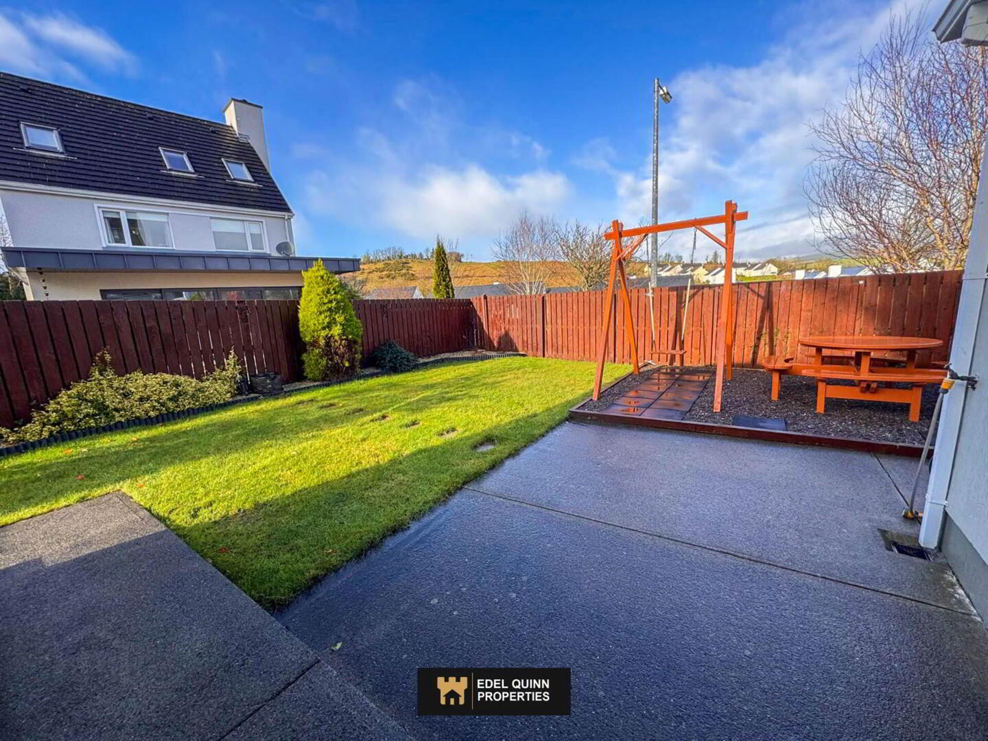 The back garden of the property has been kept in pristine condition. The house is just 1.3km from the Diamond in Donegal Town so everything the town has to offer is within walking distance.