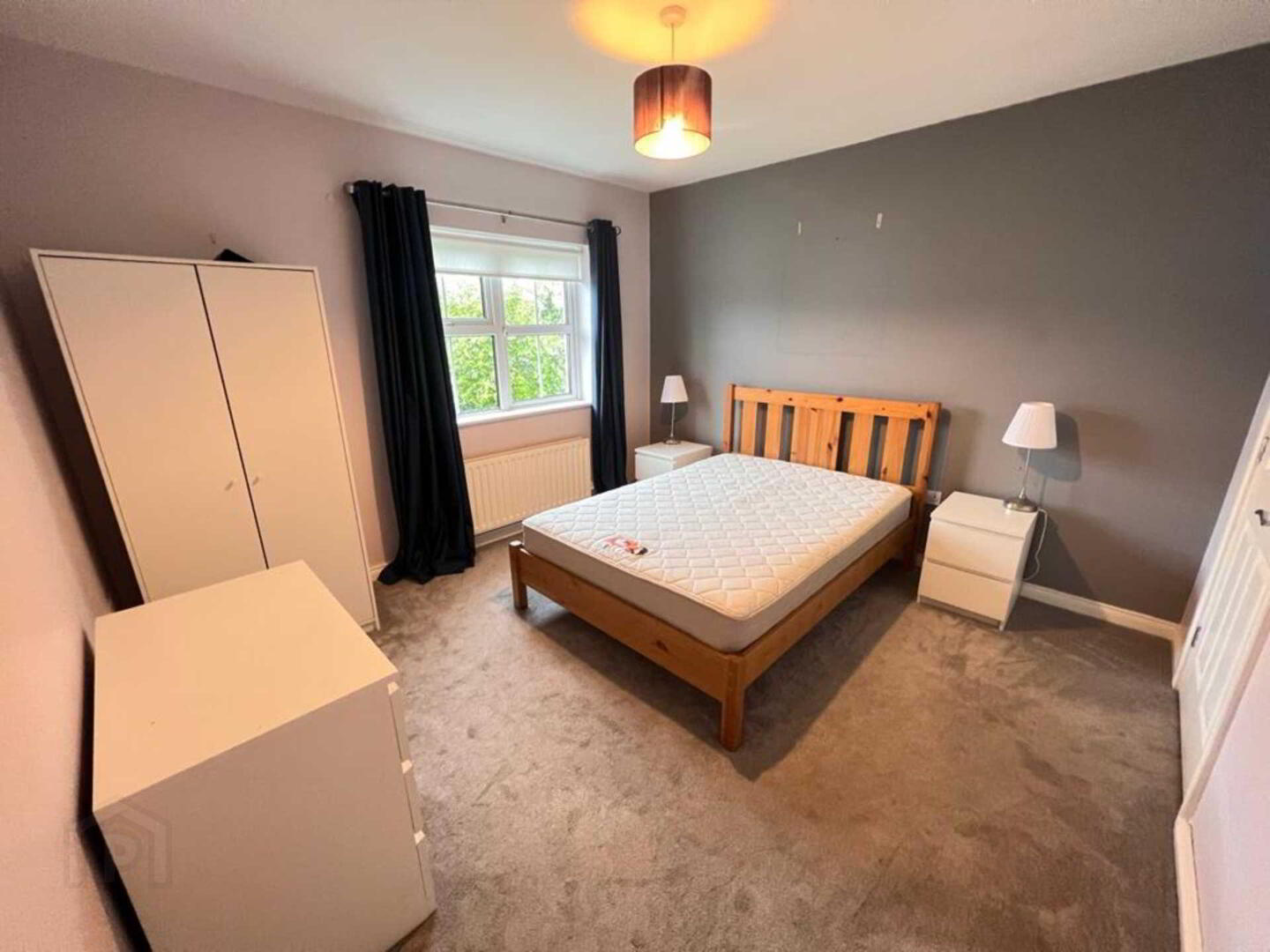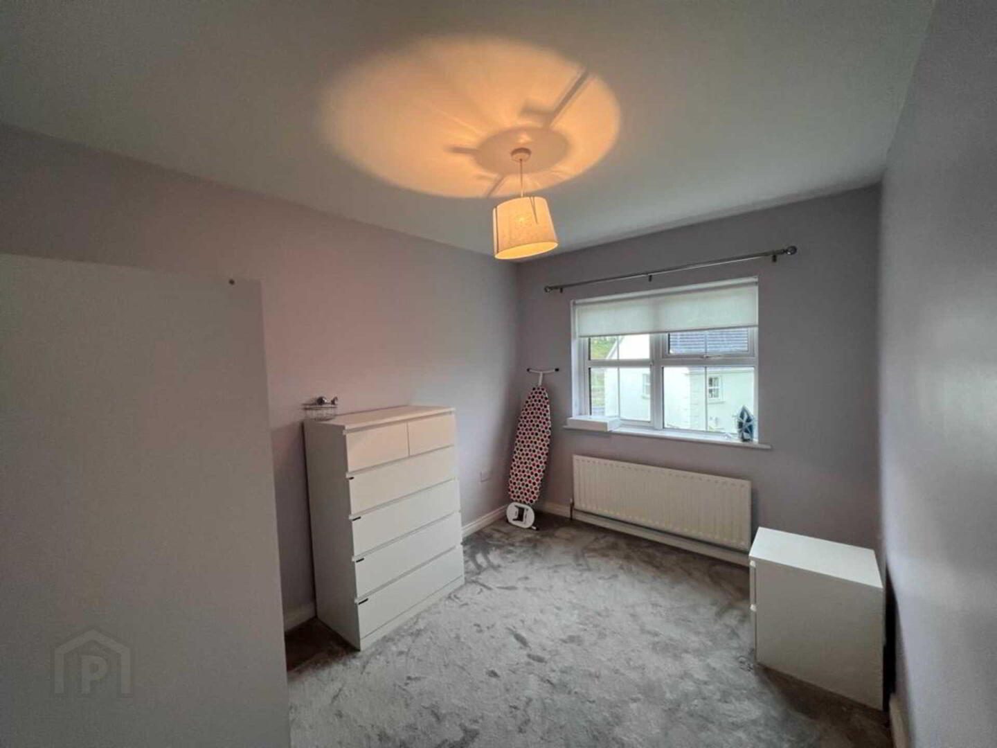 Walls painted, carpet floor, 2 no. windows, 1 no. radiators