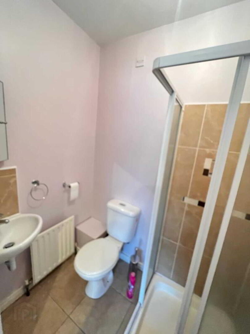 Tiled floor, walls painted, Triton T90 electric shower, wc, whb, 1 no. radiators