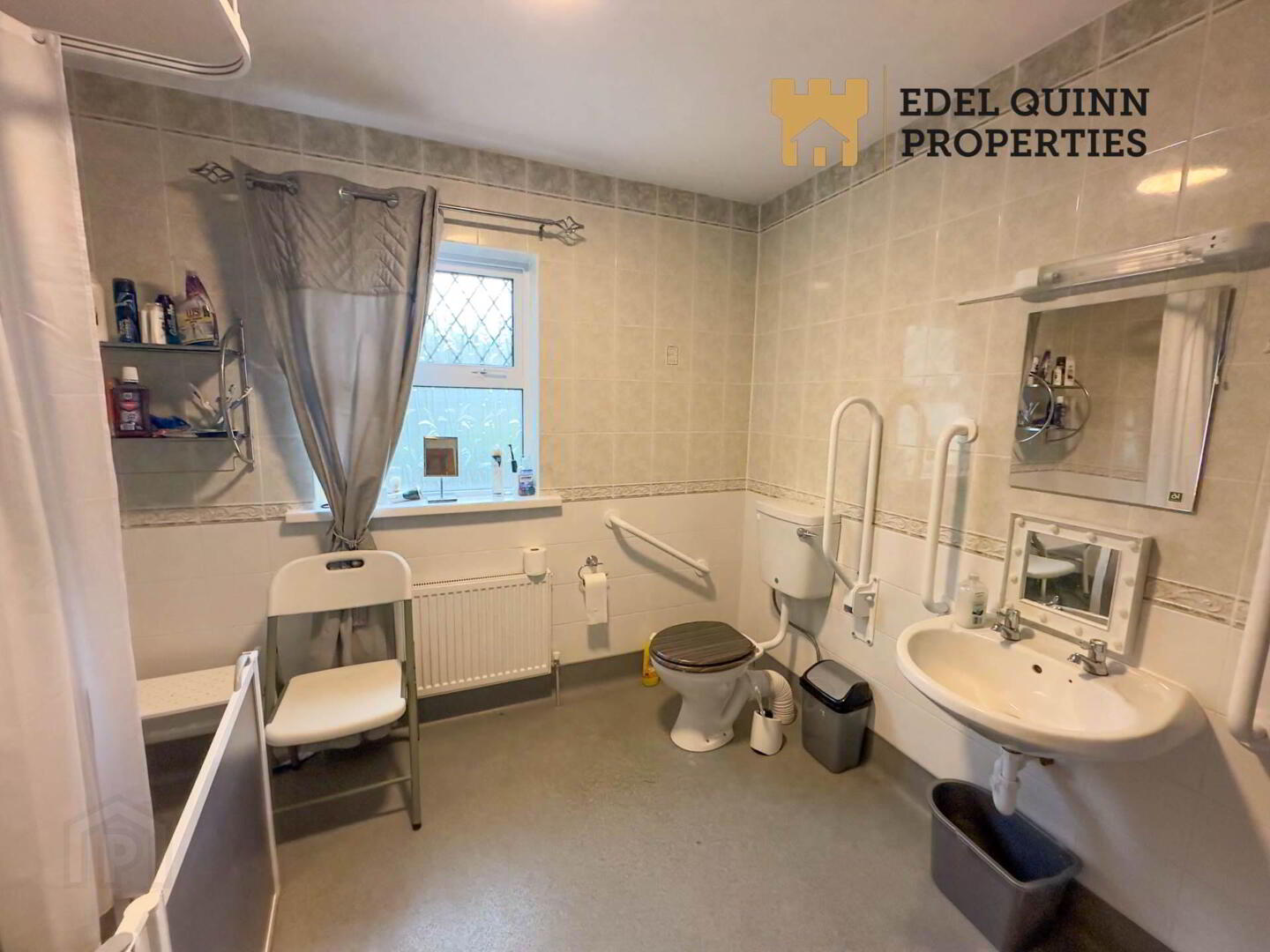 Walls tiled, Cushion Flooring 1no. Window, 1no. Radiator, Wash hand basin, Safety Shower, WC
