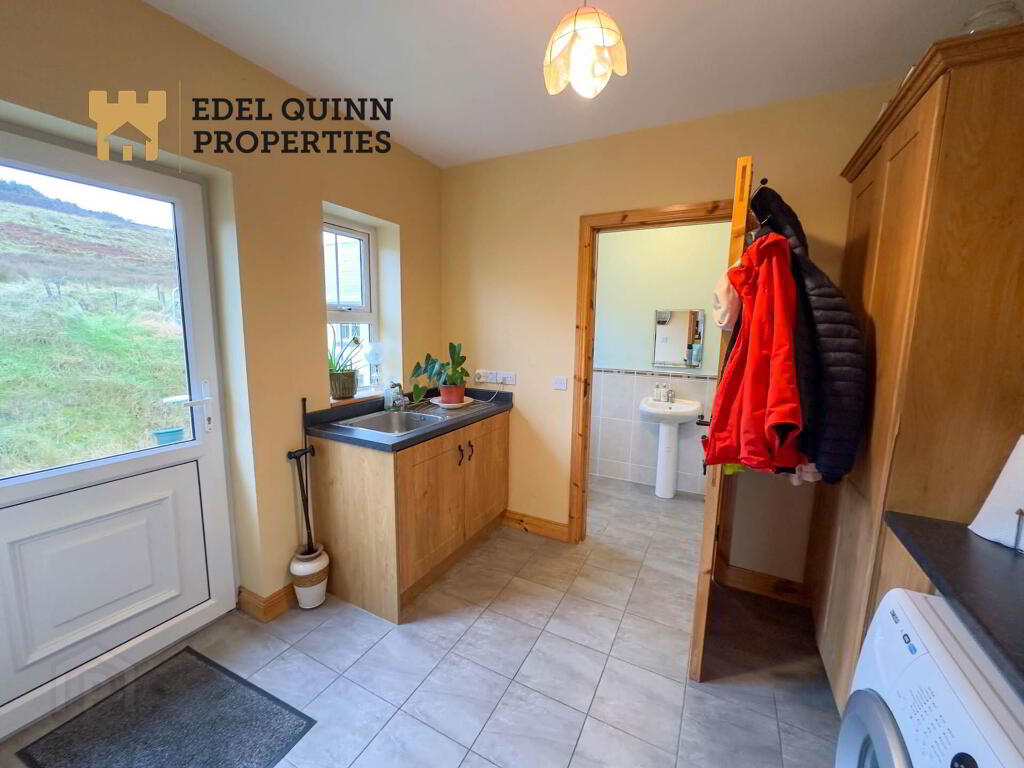 Combining generous proportions with a thoughtful design, this home is perfectly positioned to enjoy Kilcar`s local amenities and the stunning Donegal coastline. The approach to the property is particularly enchanting, with a gentle stream running along the front and a quaint bridge leading you across to the house. This unique feature not only adds character but also creates a picturesque sense of arrival, setting the tone for the peaceful and private setting that awaits inside,